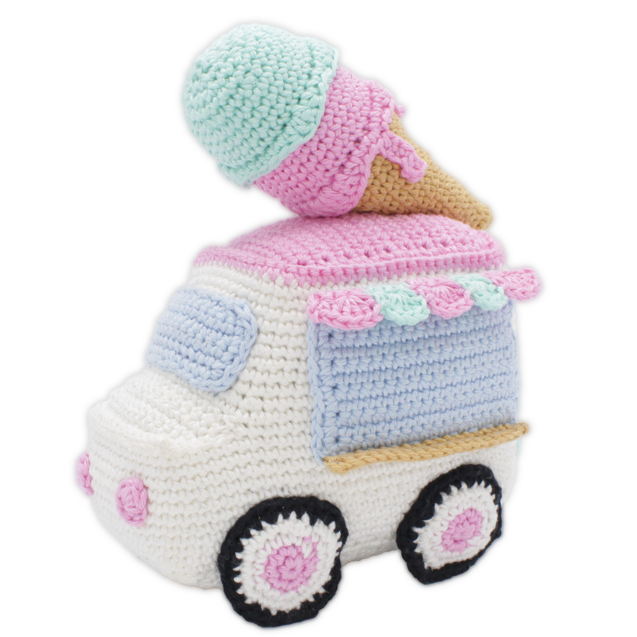 Nothing evokes the summer feeling better than the melody of the Ice Cream Truck driving down the street! This ice cream truck has fresh summer pastel colors and a large ice cream on the roof. The Ice Cream Truck makes a great gift and an addition to any collection. This package contains a pattern, quality yarn made of 100% cotton and all the supplies needed to get started (excl. crochet hook). The Ice Cream Truck is approximately 16 cm high, 13 cm long, 8 cm wide and is made with a 2.5 mm crochet hook.