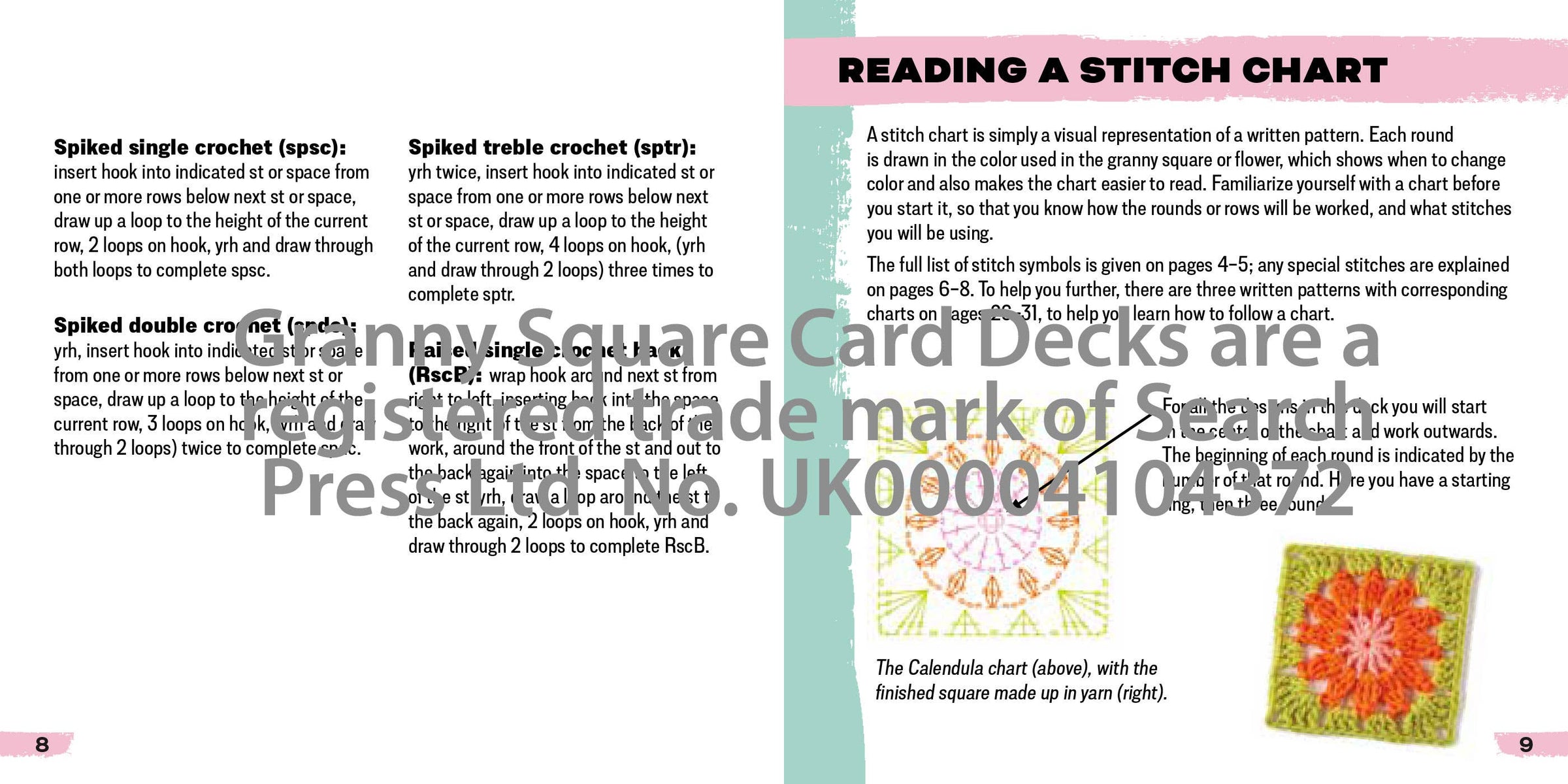 Also within is a 32-page booklet, which contains a comprehensive step-by-step guide to reading and understanding crochet charts, with four side-by-side examples of pattern and chart instructions to get you started. You'll also find advice on working three-dimensional flowers, choosing yarns and hooks, 2 different methods for joining your squares